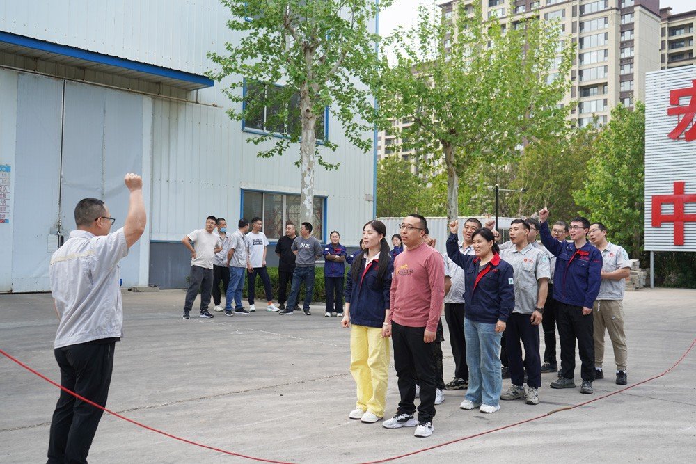 本次跳繩比賽共五支隊伍,分別是南樓辦公室、北樓辦公室、智能生產部、直管生產部、盤管生產部。戰前宣誓環節,各隊隊長振臂高呼,隊員們聲浪如潮,整個賽場沸騰著宏泰人永不言敗的熱血!